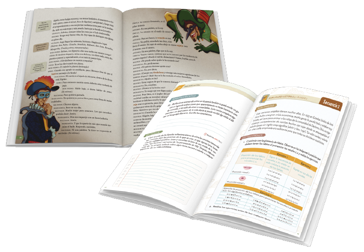 Cada bimestre se organiza en 5 secuencias de lecturas y ejercicios, 1 proyecto de escritura y evaluación: