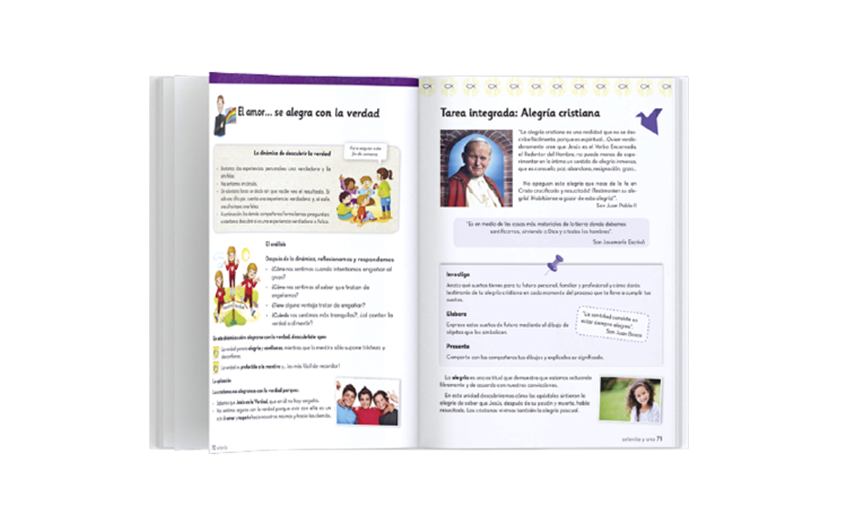Zain Primaria proporciona un triple encuentro: el mensaje de Jesús con tus alumnos, contigo como docente, y el encuentro entre ustedes para vivir la fe en el cristianismo.